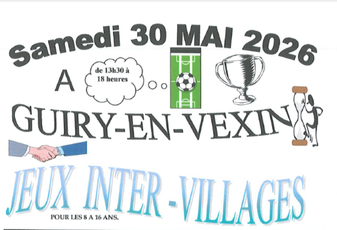 Cette année, les Jeux Inter-Villages se dérouleront sur la commune de Guiry-en-Vexin le 30 mai 2026. Les enfants et adolescents âgés de 8 à 16 ans sont invités à y participer. Vous pouvez...